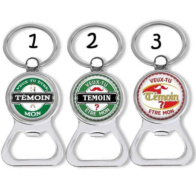 Pour les hommes, la demande de témoin pourra se faire sous la forme d’un décapsuleur à bouteilles. La petite phrase « Veux tu être mon témoin ? « sera inscrite sur l’ouvre bouteille. A l’image de ces décapsuleurs signés Martika création, votre demande n’en sera que plus surprenante. Vous pourrez également opter pour des bouchons stoppers personnalisés dans le même esprit.