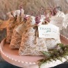 A l'initiative de Martha Stewart, les sacs pourront prendre des motifs fleuris pour un thème de mariage champêtre. De jolies fleurs viendront ainsi décorer le carton du sachet. Disposez ainsi les sacs sur une table pour créer l'illusion d'un champs de fleurs. Pour donner à vos pochons à dragées une pointe d'originalité, vous pourrez les disposer dans des cornets en papier. Choisissez un papier à motifs ou des napperons en dentelle si vous souhaitez apporter une touche vintage à votre décoration.