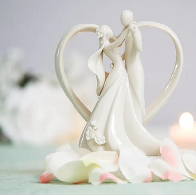 Si mariage est synonyme d'amour, il n'est pas surprenant de constater que les scènes romantiques restent incontestablement le sujet privilégié des futurs mariés dans le choix de leur figurine de pièce montée. Nous vous proposons un florilège des figurines de gâteau les plus romantiques !