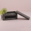 2. Posez votre boîte à chaussures sur le côté et glissez y une boîte d'allumettes au fond. Marquez avec un crayon dans l'intérieur de la boîte à chaussures la longueur de la boîte d'allumettes. A partir de ce repère, recoupez les 4 côtés de la boîte à chaussures suivant la longueur de la boîte d'allumettes.