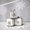 Alliez la sobriété et l'élégance avec une décoration de table en blanc et gris argent. Soignez les détails avec des ronds de serviette en forme de flocon en métal argenté. Pour les marque-places, des cartons en forme de flocon s'attacheront au verre. Comme cadeau d'invités, des rouleaux de confiseries emballés dans un paquet en forme de gros bonbon habilleront la table.