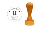 Vous pourrez créer votre faire part à partir d’un gros tampon que vous apposerez sur votre carton. Nous vous proposons dans notre boutique la possibilité de faire réaliser un tampon sur mesure de toutes tailles, y compris de grande taille. Il existe des tampons de toutes formes : tampon rond, carré, rectangulaire… A vous de chosir celui qui conviendra à votre papeterie. Veillez à bien appliquer l’encre sur le tampon bois avant de l’apposer sur la feuille. Vous pourrez d’ailleurs réaliser de la même manière le carton de réponse.