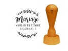 Il est de coutume d’indiquer avec le cadeau d’invités les prénoms des mariés et la date du mariage afin que les convives puissent se souvenir de votre jour J. Le tampon mariage servira ainsi à personnaliser votre cadeau invité. Vous pourrez par exemple apposer un tampon directement sur les étiquettes qui accompagneront vos cadeaux d’invités. Les étiquettes pourront alors être accrochées à votre boîte à dragées ou encore à une fiole en verre avec une cordelette.